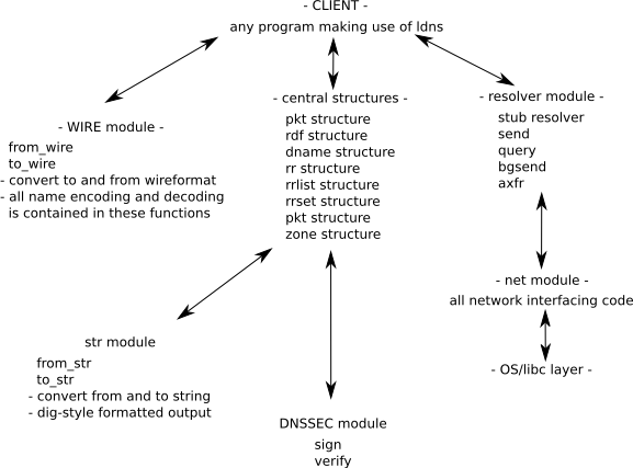 The resolver module will get a packet and will mold it so that it can be sent off to a nameserver. It might need to interface with the wire module (arrow not drawn).